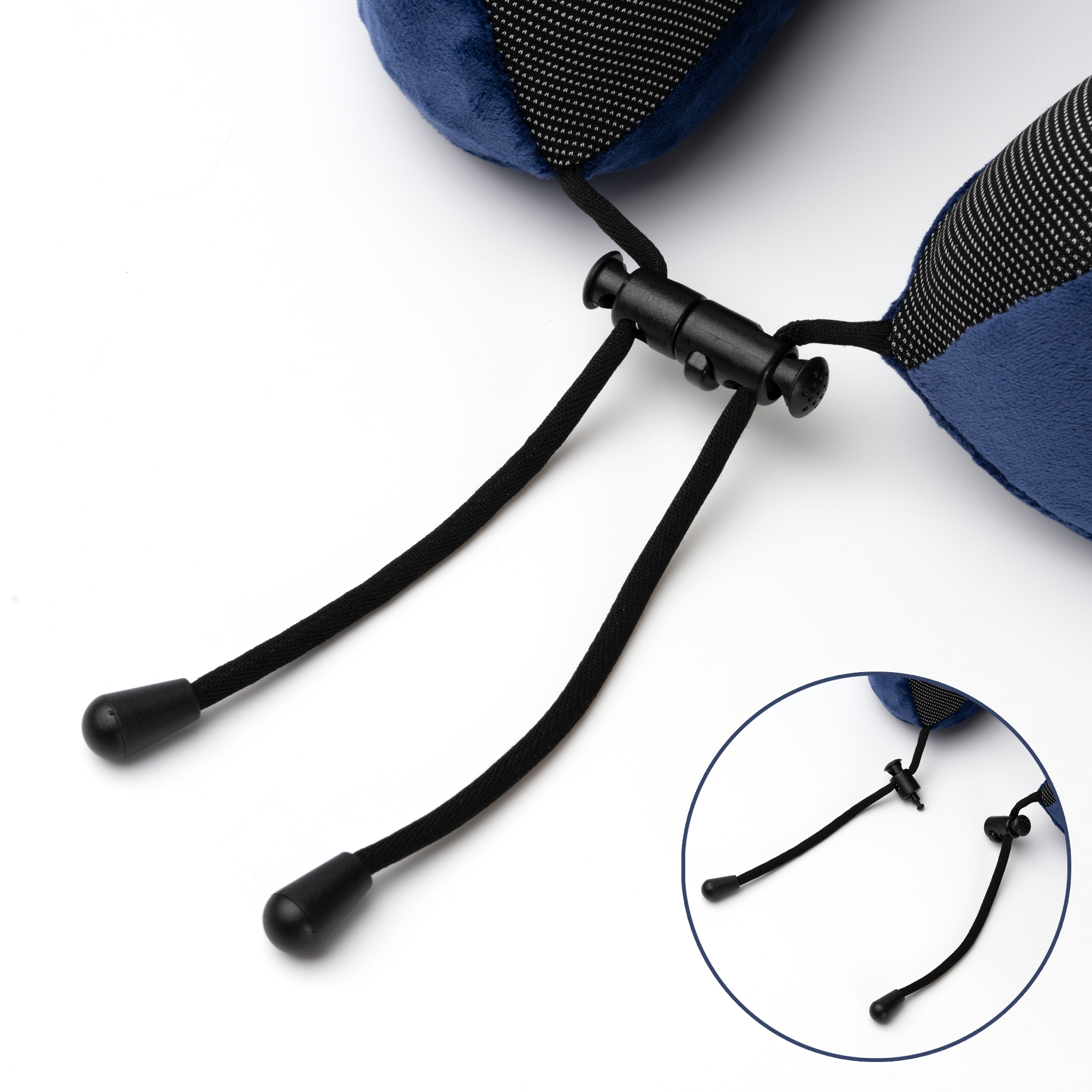 Almohada para viaje elaborada en poliéster. Cuenta con memoria estructural que hace que recupere su forma después de cada uso. Ofrece un ajuste anatómico que permite adaptarse fácilmente a la morfología de su quien lo usa y hacer así más cómodos sus viajes. Cuenta con cordón ajustable que se puede separar para hacer más fácil el ajuste ergonómico de la almohada.